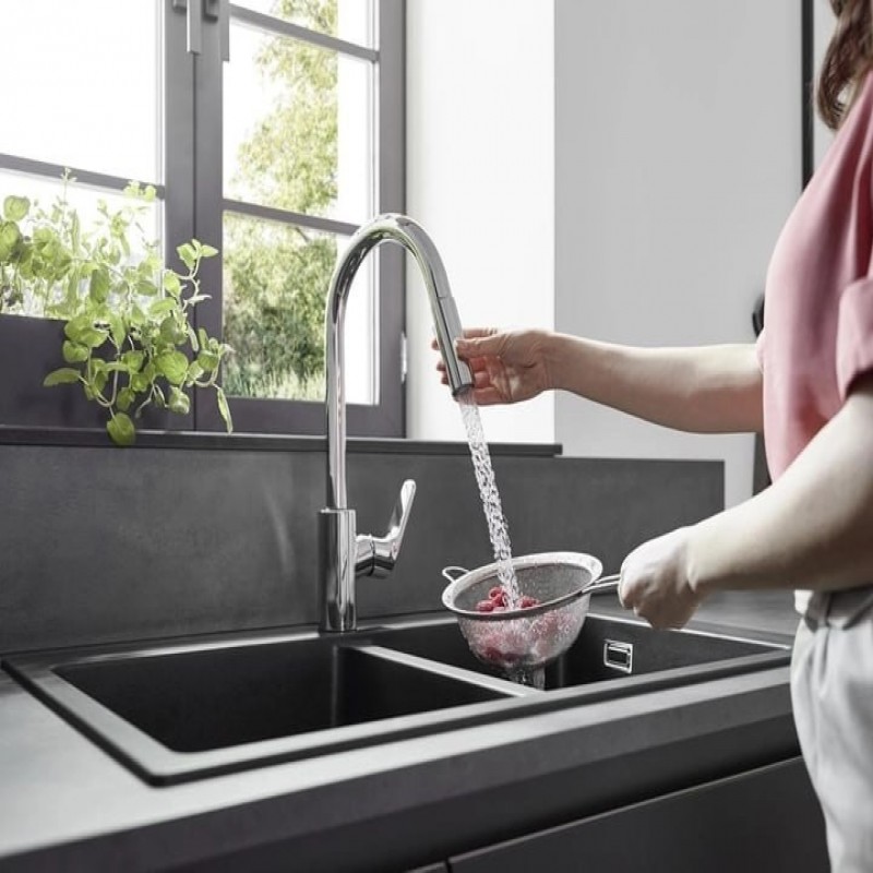 Змішувач-кран кухонний HANSGROHE Focus 31815001 з висувним виливом 2 режими